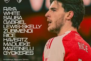 阿森納首發(fā):1-拉亞、4-本·懷特、2-薩利巴、6-加布里埃爾、49-斯凱利、36-蘇維門迪、41-賴斯、29-哈弗茨、20-馬杜埃凱、11-馬丁內(nèi)利、14-約克雷斯