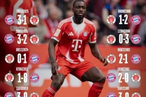 拜仁在最近10次同圣保利的交鋒取得了9勝1負,共計狂轟29球,丟了7球。