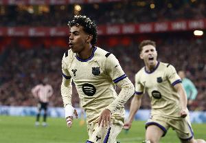 數(shù)據(jù)統(tǒng)計顯示,本賽季西甲聯(lián)賽亞馬爾進(jìn)球和助攻數(shù)均已上雙,是五大聯(lián)賽第三位做到這一點的球員。