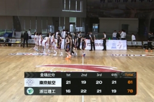 末節決勝雙方依舊拉鋸互不相讓,節中幾次戰平,南京航空在落后4分的情況下依靠一波7-0的攻勢反超比分,浙江理工接近3分鐘的得分荒幾乎葬送比賽,蘇靖妍命中止血三分,但最后一攻的絕平三分沒能打成。最終,南京航空航天大學81-78力克浙江理工大學拿下比賽。