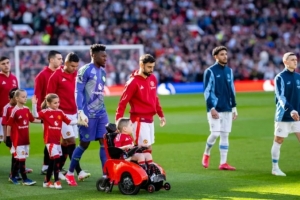 還有一位名叫博比·摩爾的男孩,來自貝爾法斯特,患有脊髓性肌萎縮癥。他曾給曼聯隊長寫信,B費把博比帶到卡靈頓訓練基地,并游說讓他成為曼聯首位坐輪椅的球童。去年四月曼徹斯特德比,他們一起攜手入場。