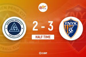半場戰罷,云南玉昆暫3-2深圳新鵬城。