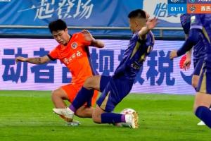 體育資訊04月12日訊 津門虎vs海牛第82分鐘,黃嘉輝對金永浩犯規,裁判一開始沒有出牌。