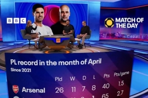 體育資訊4月13日訊 BBC統(tǒng)計了2021年以來4月份沖刺階段阿森納、曼城在英超比賽中的戰(zhàn)績,阿森納場均1.5分、曼城場均2.7分。