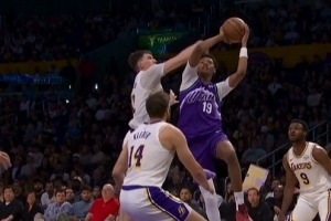 GIF-拉拉維亞干擾貝利被吹犯規(guī),湖人挑戰(zhàn)成功