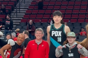 賽后,作為球隊(duì)常規(guī)賽收官戰(zhàn)的保留節(jié)目,開拓者球員為部分季票球迷送上簽名球衣,楊瀚森把自己的球衣送給了一位從1971年就開始支持球隊(duì)的老球迷。