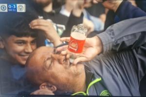 體育資訊04月13日訊 英超第32輪,曼城客場(chǎng)3-0完勝切爾西。比賽過(guò)程中轉(zhuǎn)播鏡頭對(duì)準(zhǔn)了看臺(tái)上的一位曼城球迷,他拿著印有阿森納標(biāo)志的水瓶瘋狂嘲諷慶祝,瞬間走紅。