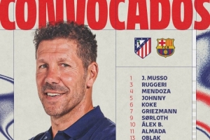 體育資訊4月14日訊 北京時間明天凌晨,馬競將在歐冠1/4決賽次回合比賽中主場對陣巴薩,首回合馬競2-0取勝,馬競公布了此役的球員名單。吉梅內斯、漢茨科、普比爾、巴里奧斯缺席,卡爾多索、奧布拉克回歸。
