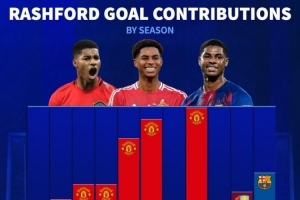 體育資訊4月15日訊 巴薩將在本輪歐冠再戰(zhàn)馬競,拉什福德的表現(xiàn)將至關(guān)重要,《轉(zhuǎn)會市場》統(tǒng)計(jì)顯示拉什福德本賽季直接參與進(jìn)球數(shù)已可排在生涯第4位。