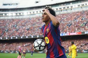 體育資訊4月15日訊 歐冠1/4決賽次回合,巴薩客戰(zhàn)馬競,亞馬爾在比賽第4分鐘破門。
