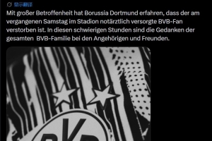 體育資訊4月15日訊 多特官方發(fā)文,悼念在比賽期間不幸離世的球迷。