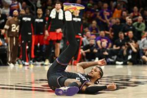 體育資訊4月15日訊 NBA附加賽,太陽半場62-65落后開拓者。