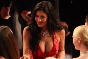 凱莉·詹娜一身深V紅色長裙現身,吸引無數目光。
