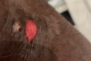 詹姆斯曬出他右腿上一處已經(jīng)皮膚破損的傷口寫道:“也許是因為那次那次年度最佳撲球!好痛啊??!!哈哈!”